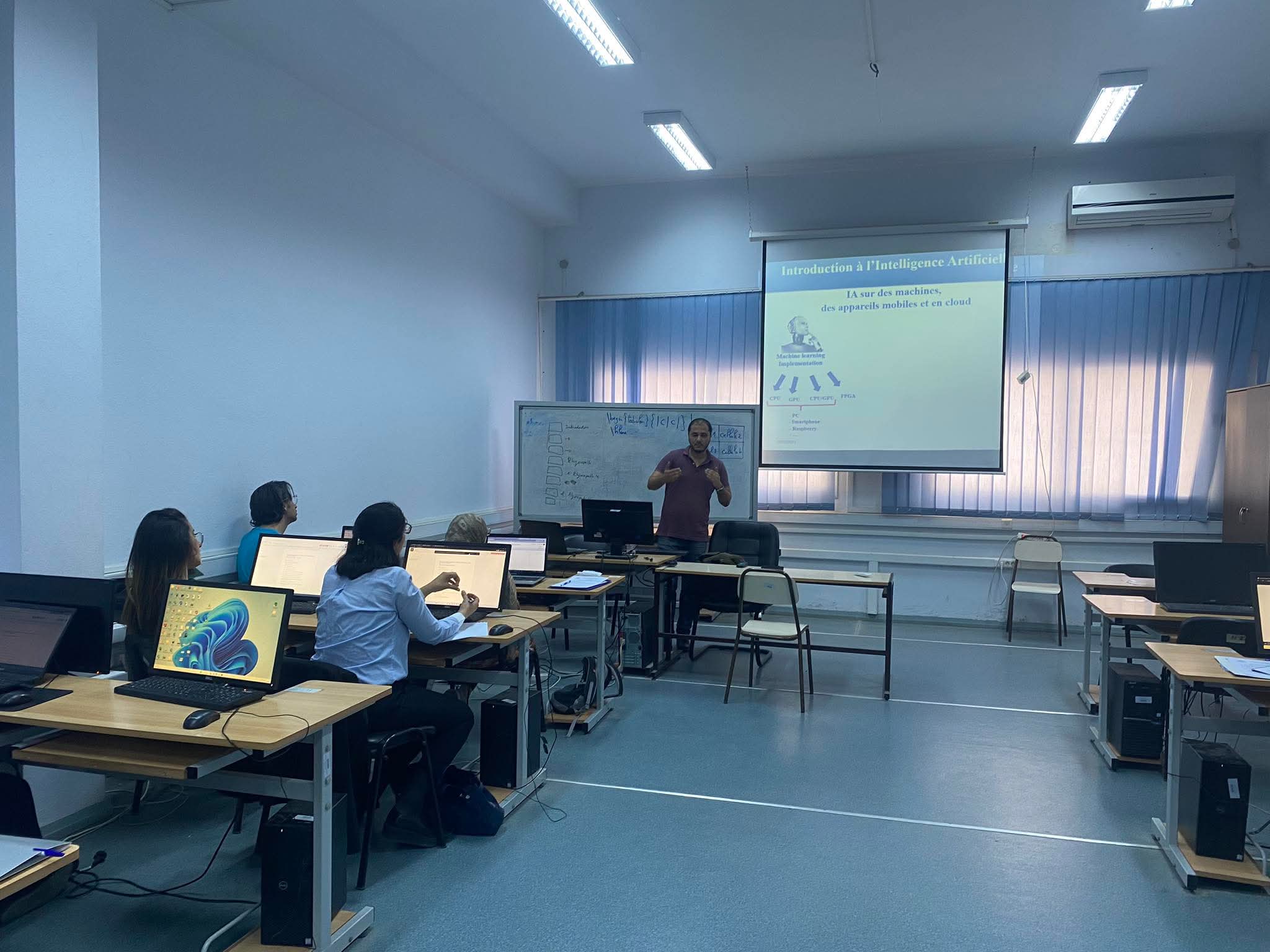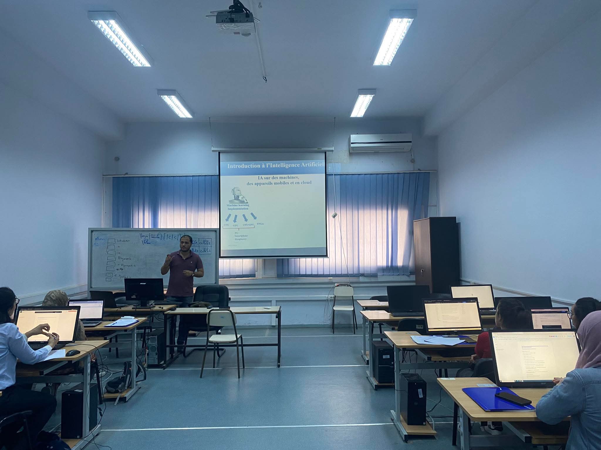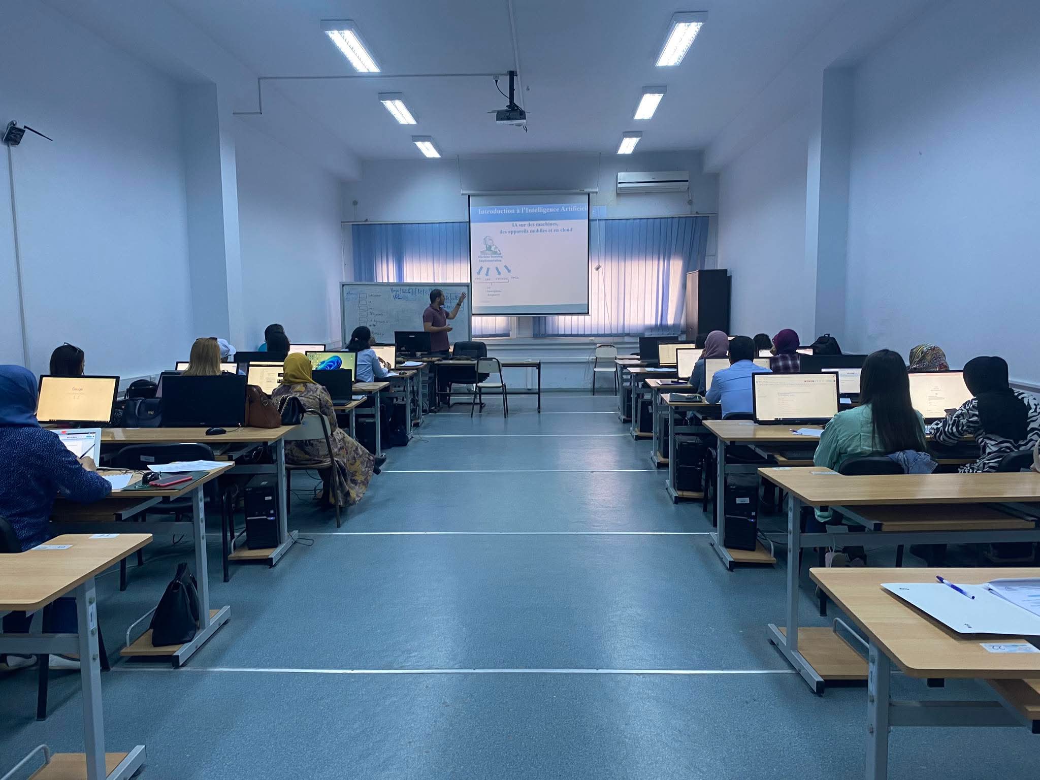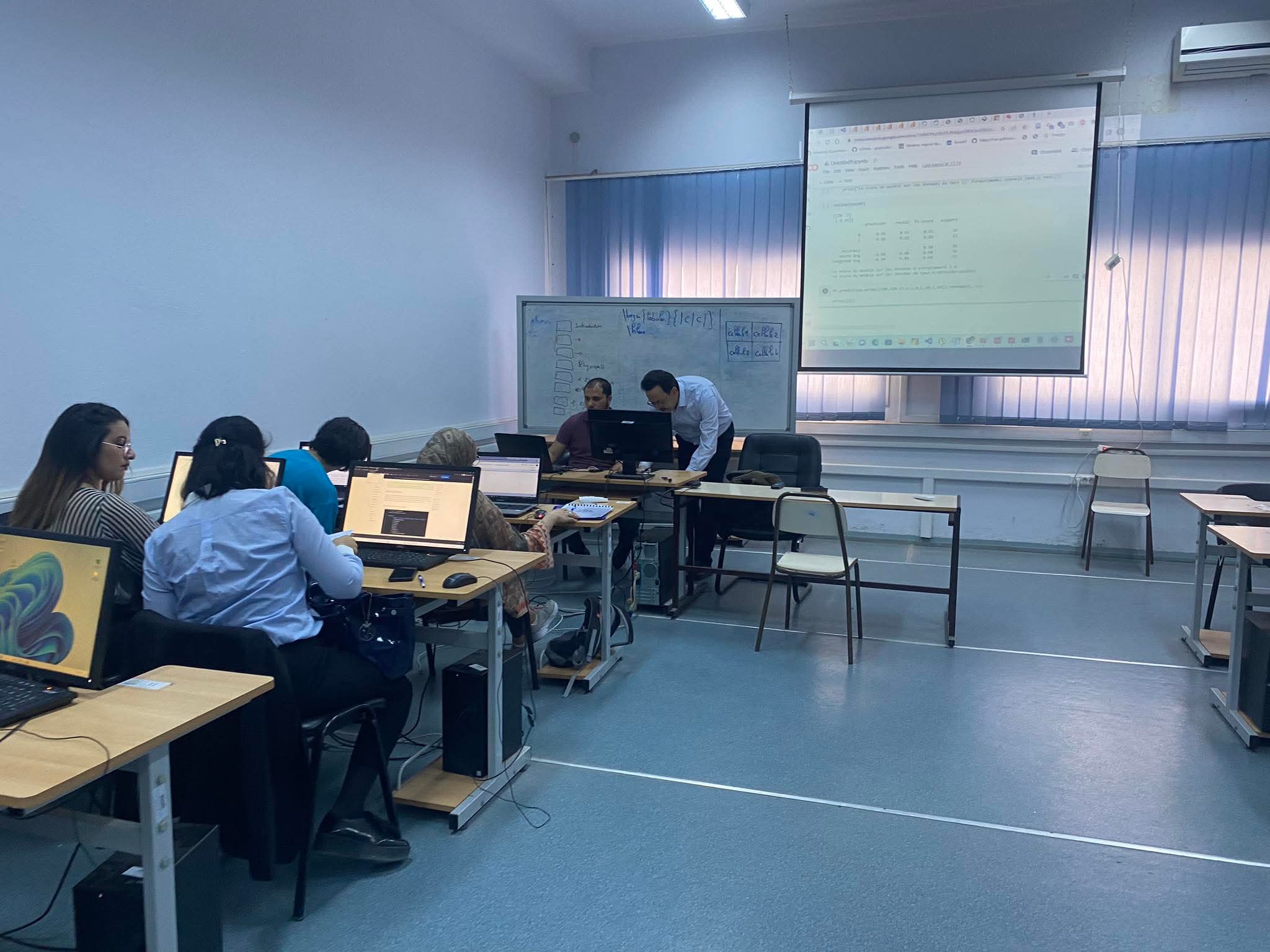 The main objective of this training was to introduce professionals to the practical applications of artificial intelligence in the medical sector, focusing on diagnosis, treatment, and patient monitoring. The rich and well-structured program began with an introduction to the fundamental concepts of AI applied to medicine, followed by an exploration of its use in disease diagnosis through examples of algorithms, and then its role in optimizing treatments and personalized patient follow-up using real-time monitoring tools.